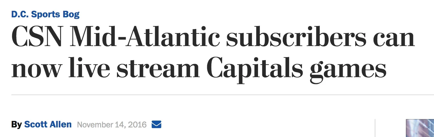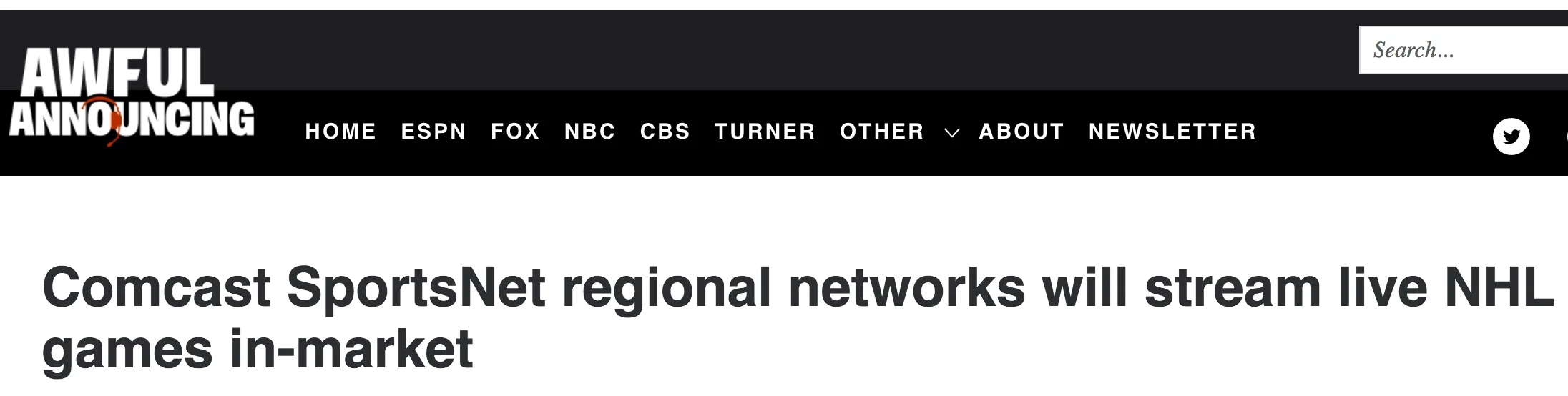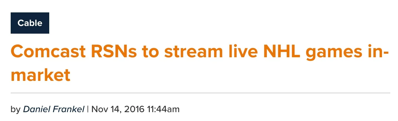 In 2016, the NBC Sports Group reached an agreement with the NHL to secure rights for in-market streaming.